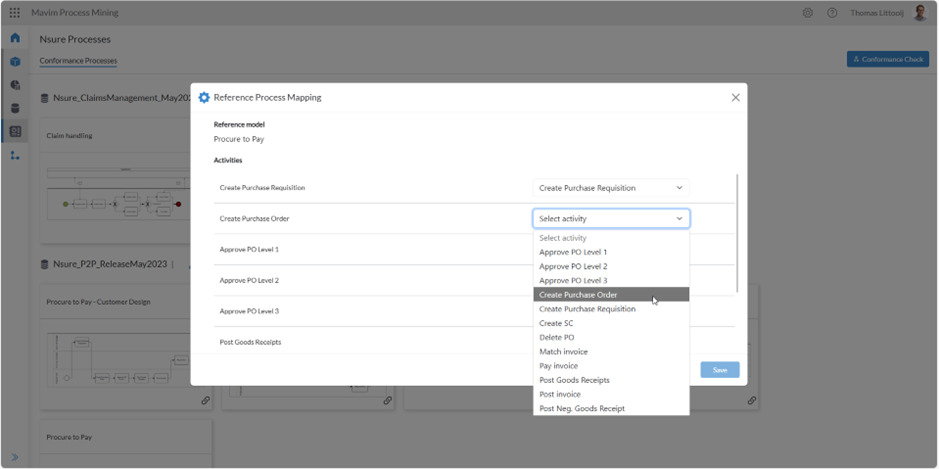 Je kunt nu activiteiten uit jouw referentiemodel mappen naar namen voor datasetactiviteiten. De namen hoeven niet identiek te zijn wanneer Conformance Checking wordt toegepast.Voordelen / Gebruiksscenario's: