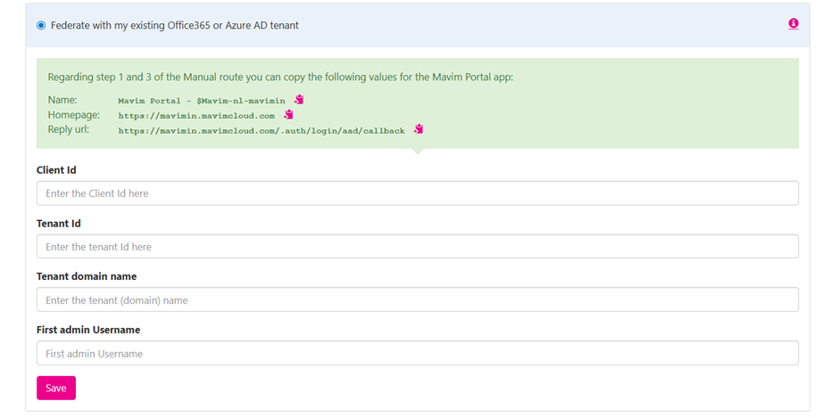 Bij handmatige federatie met een bestaande Azure AD-tenant is het niet langer nodig om een Client Secret in te vullen.