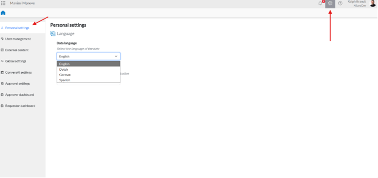 De taalondersteuning is uitgebreid met twee extra datatalen: Duits en Spaans. Deze kunnen nu worden geselecteerd in de persoonlijke instellingen, waardoor gebruikers meer flexibiliteit hebben in de manier waarop ze met hun content werken.
