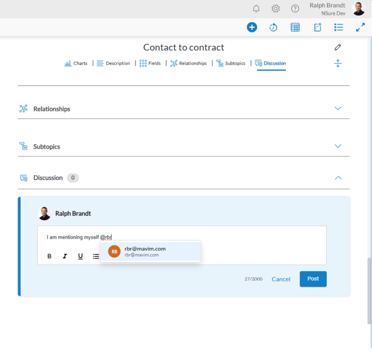Er is een nieuwe Discussie-functie geïntroduceerd voor onderwerpen in de gele kast, ter vervanging van de eerdere Feedback-functie. Met Discussies kunnen gebruikers rechtstreeks samenwerken rond onderwerpen en collega’s direct vermelden met @mentions om een gesprek te starten of voort te zetten.
