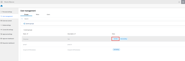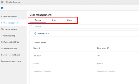- We’ve improved the navigation order in User Management: tabs are now shown as Groups, Roles, Users instead of Users, Groups, Roles. This makes it easier to follow the logical flow when managing access.